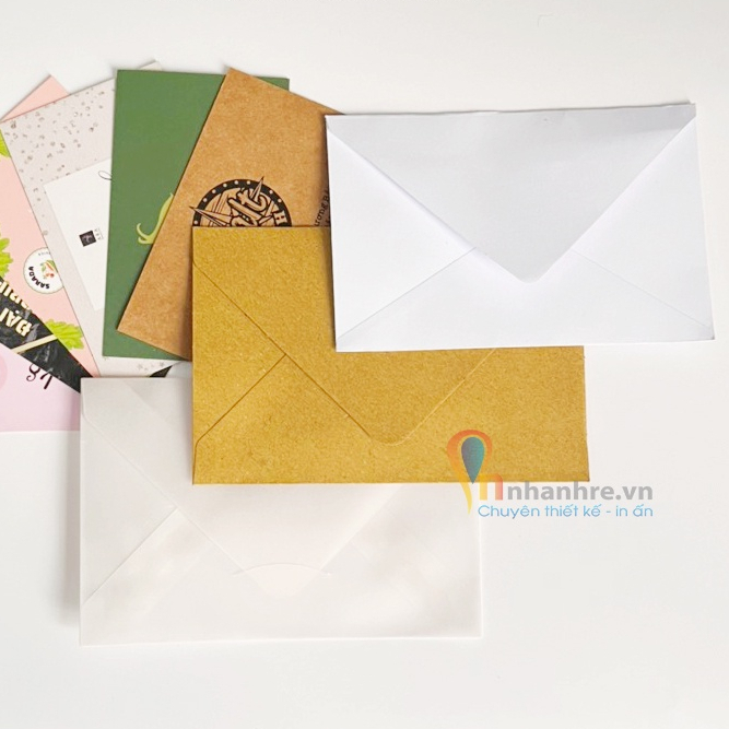 – Chất liệu: giấy Kraft, giấy trong suốt hoặc giấy Ford 120gsm