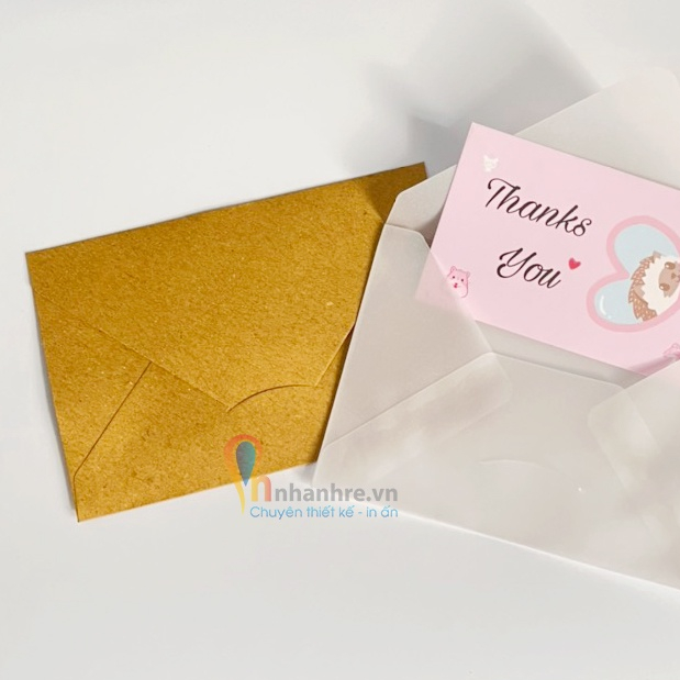 + Bao thư giấy Kraft, Bao thư màu trong suốt: 12cm x 8cm